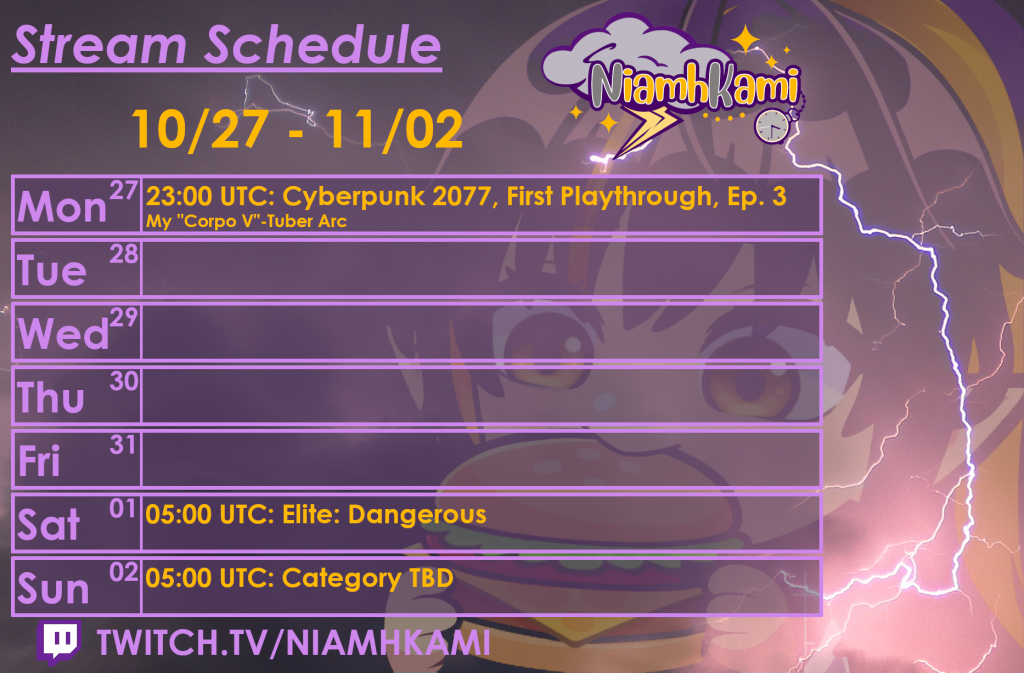 Stream Schedule 10/27 – 11/02