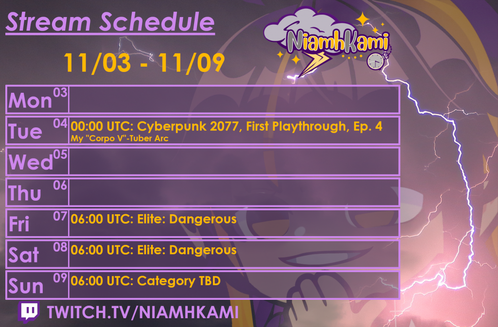 Stream Schedule 11/03 – 11/09