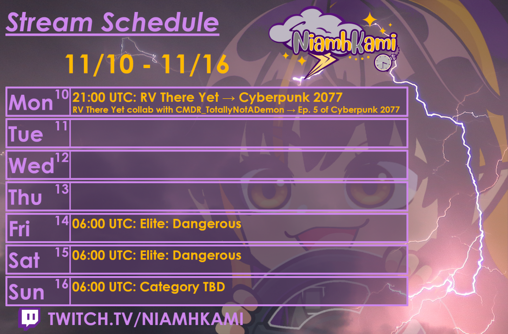 Stream Schedule 11/10 – 11/16